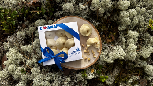 Ирис в наборе "Пельмешки с Севера" из белого шоколада – это уникальный подарок, который перенесет вас в мир детских воспоминаний. Каждый "пельмешек" скрывает внутри кедровые орешки, создавая интересное сочетание: сначала тает нежный шоколад, а затем раскрывается насыщенный вкус ореха. Набор представлен в элегантной белой упаковке с акцентом на Ямал и изображением северного медведя, что подчеркивает уникальность региона. Если ирис покажется для вас не слишком мягким, просто подогрейте его в микроволновой печи на 10 секунд, и он станет мягким, идеально подходящим для наслаждения с чашкой чая. Этот продукт станет отличным подарком для любителей сладостей и ценителей оригинального вкуса. С набором "Пельмешки с Севера" вы сможете подарить близким частичку северного очарования.
