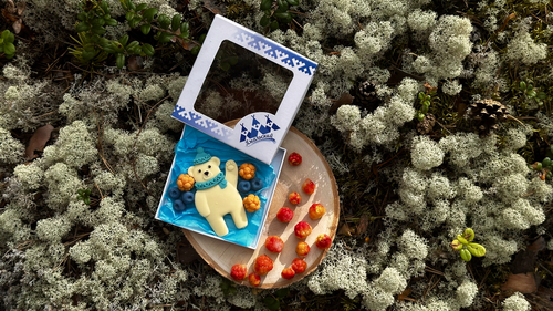 Шоколад "Мишка" представляет собой уникальный продукт, выполненный из белого премиального шоколада и имеющий форму северного медведя. Этот изысканный десерт отличается высококачественными ингредиентами, что обеспечивает ему нежный и насыщенный вкус. Особенностью дизайна является этнический акцент: медведь одет в шарф и шапку, украшенные традиционным орнаментом Ямала, что придаёт изделию уникальность и оригинальность. А северные шоколадные ягодки в виде морошки и черники приведут в восторг не только детей , но и взрослых.