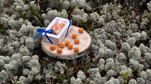Представляем вам шоколад "Морошка с Севера" в удобной упаковке! Эта необычная сладость родилась совершенно спонтанно: крупный северный ресторан попросил нас просто упаковать ягодки морошки для их гостей как комплимент на стол, и мы решили сделать из этого нечто особенное. Теперь вы можете насладиться настоящим вкусом морошки, только в шоколадном исполнении! Каждая шоколадка выглядит как настоящая морошка, и вкус у нее такой же яркий и насыщенный. Этот набор уже завоевал любовь наших клиентов и стал одним из топовых товаров. Попробуйте и вы – пусть сладость из Севера порадует ваши вкусовые рецепторы!